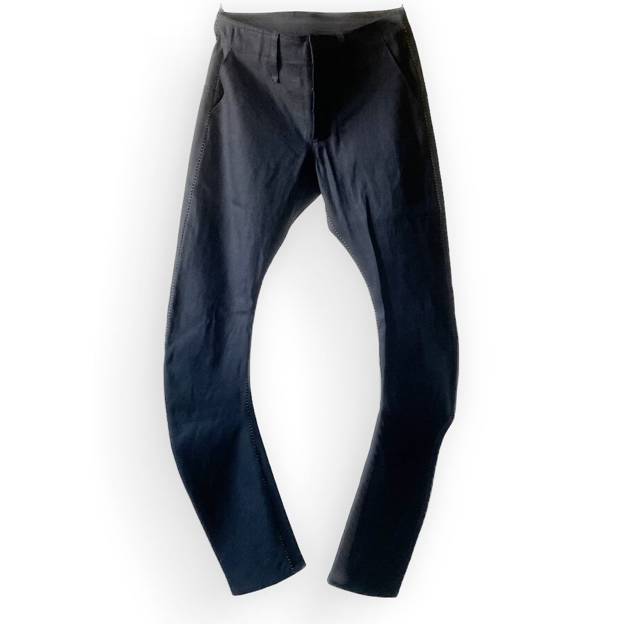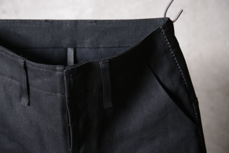 極端なカーブ構造を持ったシルエットパンツ。