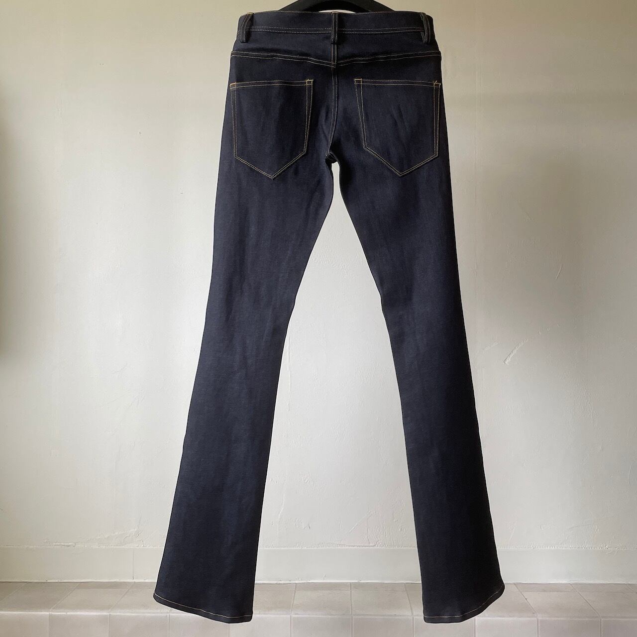 限界まで絞り込まれた渡り、ヒップ、膝幅から流れる美しいカッティング、
